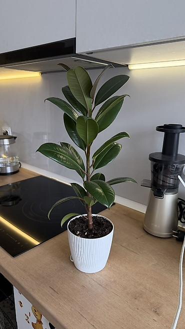Фикус Черный принц, крупное комнатное растение в напольном кашпо. Особенности: - Высота около 1,6–1,8 м (с учетом горшка). - Крупные глянцевые темно‑зеленые листья, формирует несколько стволиков....