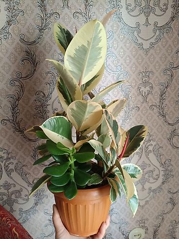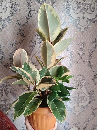 Фикус эластика вариегатный (Ficus elastica ‘Tineke’) в пластиковом