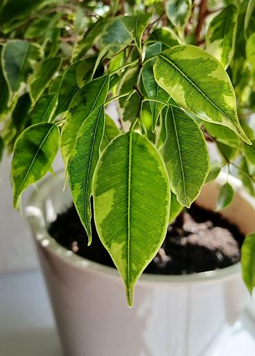 Комнатное растение Ficus benjamina (фикус Бенджамина) в горшке. -