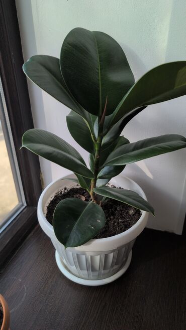 Фикус эластика (каучуконосный), сорт с крупными тёмно‑зелёными глянцевыми листьями.