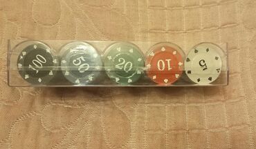 Набор игровых фишек для покера включает 100 фишек различных номиналов