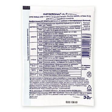 Биофунгицид, в основе которого – полезные фитобактерии в споровой форме, проникающие в ткани растений и вырабатывающие биологически активные вещества для их защиты и стимуляции. Защищает от гнилей, парши, черной ножки, фузариоза, фитофтороза, фомоза, серой гнили, ризоктониоза, альтернариоза, бактериоза, пероноспороза, мучнистой росы, ржавчины, септориоза и других болезней.