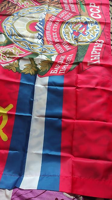 Флаг Кыргызстана - Классический красный флаг с жёлтым солнцем и тундуком в центре. - Материал: синтетическая ткань (лёгкая, хорошо держит цвет, подходит для помещения и улицы). - Края прострочены ...
