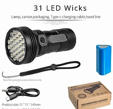 - Мощный ручной светодиодный фонарь с массивом из 31 LED для высокой яркости и широкого светового пятна.