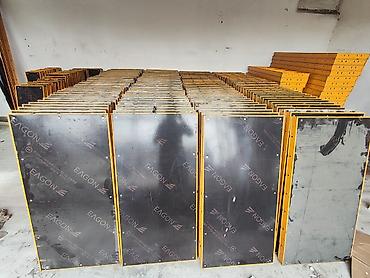 - Опалубочные щиты стального каркаса с ламинированной фанерой (бренд EAGON на облицовке). Подходят для монолитных работ: фундаменты, стены, колонны, перекрытия. Ровная рабочая поверхность, перфорация по периметру для стяжных элементов и крепежа, высокая жесткость. Большой комплект щитов для набора любых конфигураций и высот.