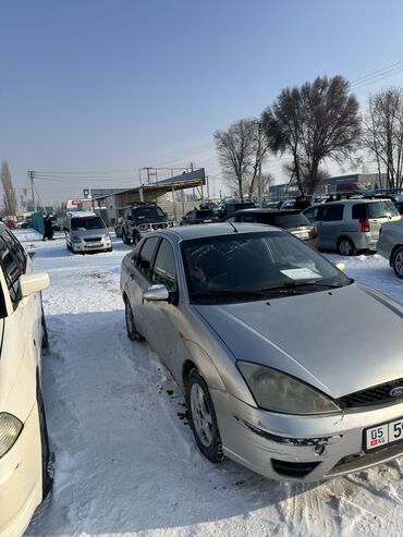 Ford Focus, седан, серебристый цвет (поколение I, дорестайлинг/рестайлинг по фото передка и кормы).