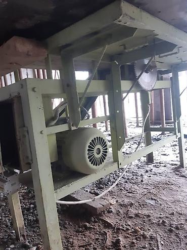 - Электродвигатель промышленного исполнения, ременная передача на пильный вал.