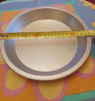 - Круглая для пиццы, пирогов - размер диаметр 24см, низ(дно)18см, глубина (высота) - 4 см - 1 штука (светлая).