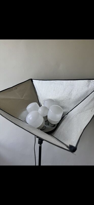 Софтбокс для фотосъемки, предназначенный для создания мягкого и равномерного освещения. В комплект входит стойка-штатив для удобной регулировки высоты и угла наклона. Внутренняя поверхность софтбокса серебристая, что обеспечивает максимальное отражение света, а внешняя часть выполнена в черном цвете. Конструкция софтбокса способствует рассеиванию света, уменьшая резкие тени и блики, что делает его идеальным для портретной, предметной и студийной съемки. Легко собирается и разбирается, удобен для транспортировки и хранения. В комплекте с софтбоксом поставляются пять светодиодных ламп.