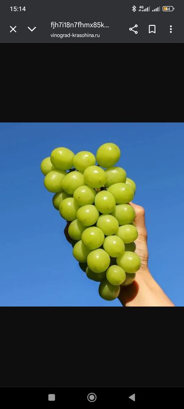 - Виноград: крупные, плотные, сочные ягоды светлых и тёмных сортов, грозди с равномерными ягодами.