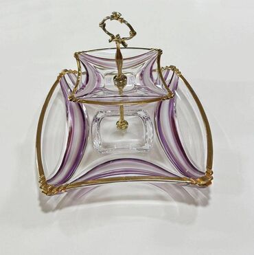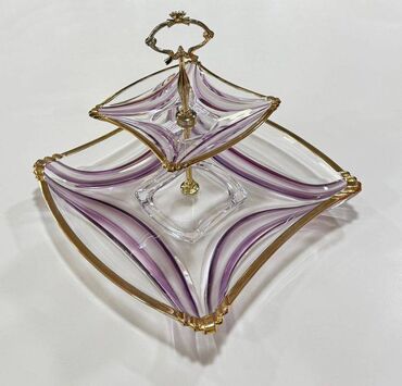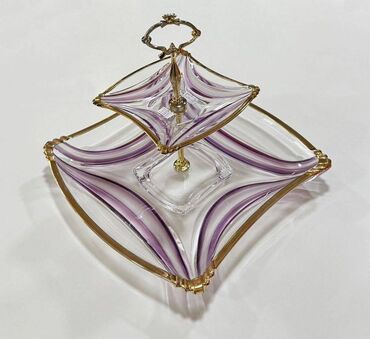 НовыйФруктовница 2 ярусная с позолотой из стекла особой прочности -это изысканное украшение вашего стола, она сделает ваш дом еще уютнее и краше. Очередной шедевр от Soga Glass.