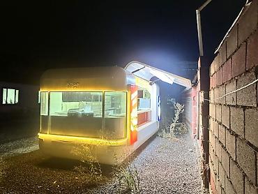 - Световые панели с меню/рекламой (“Chicken stick”, “ice cream”) на борту.
