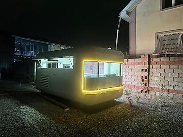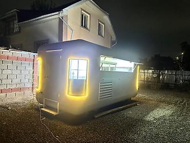- Стационарный модуль в форме прицепа с панорамными окнами и декоративной контурной подсветкой по периметру.