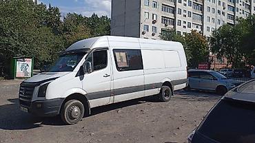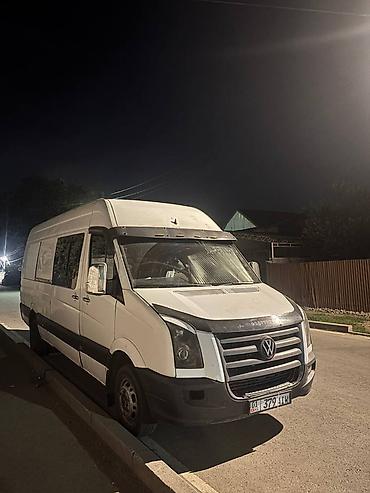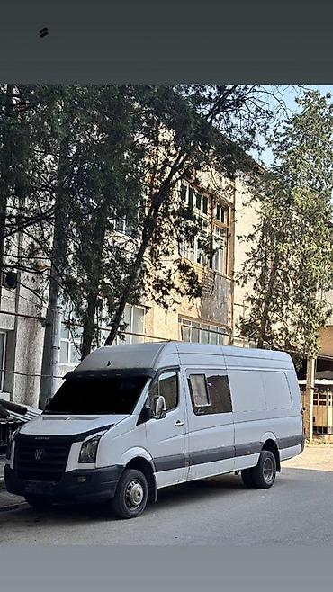 Volkswagen Crafter, удлинённая и высокая версия (L3H3). Белый фургон с двустворчными задними дверями и сдвижной боковой дверью.