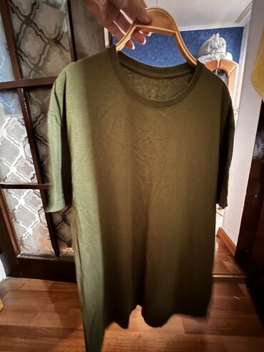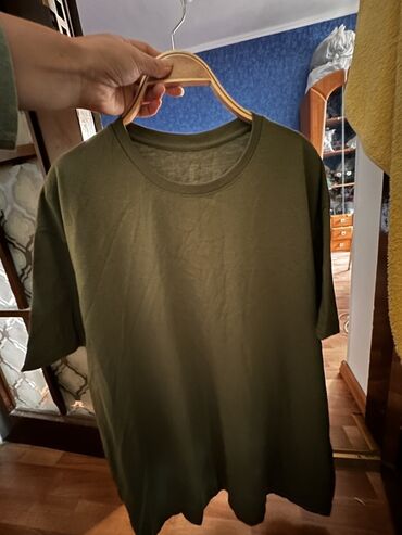 MФутболка унисекс, однотонная, оливково‑зелёного цвета.