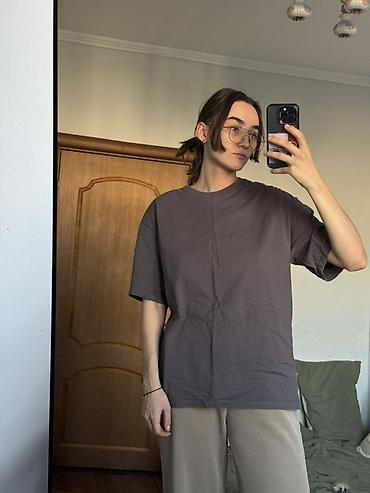 Футболка унисекс, мерч Ailan, покупалась за 2500 сом - Цвет: молочный/белый - Посадка: свободная, оверсайз, прямой крой, спущенная линия плеч - Материал: плотный хлопок (на ощупь мягкий, держит фо...