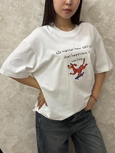 Футболки оверсайз с принтами - Модель: свободный крой, спущенная