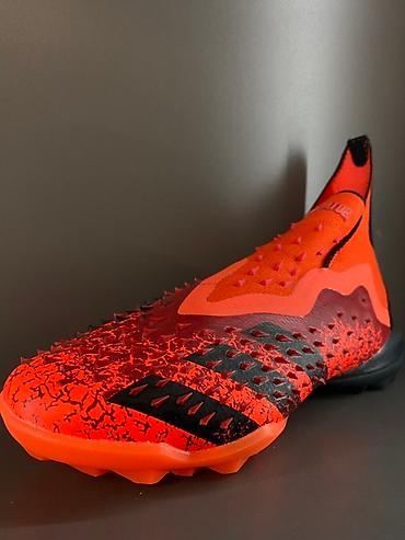 Футбольные бутсы Adidas Predator без шнурков, предназначенные для игры на траве. Модель отличается ярким дизайном с шипами для улучшения контроля мяча. Эластичный верх обеспечивает плотную посадку и комфорт во время игры. Подходят для профессиональных и начинающих игроков.