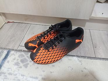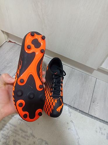 Футбольные бутсы Puma, расцветка черно‑оранжевая. ОРИГИНАЛЬНЫЕ БУТСЫ