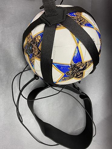Футбольный тренажер для отработки ударов и ведения мяча с возвратом мяча на резинке.