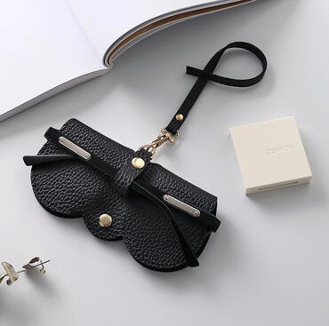 Кожаный чехол для очков с застежкой на кнопке и петлей для подвешивания. Компактный и стильный аксессуар для хранения очков, защищает их от царапин и повреждений. Подходит для повседневного использ...
