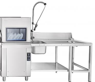 Возможна установка раздаточных столов спереди посудомоечной машины (при стыковке к правому борту машины предмоечных столов)