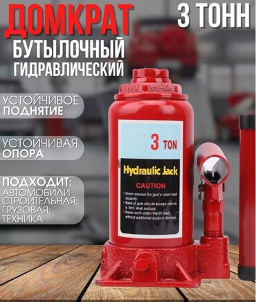 Домкрат бутылочный гидравлический с клапаном 3 тонны. Широко применяется на производствах, шиномонтажах, станциях технического обслуживания, а также в частных гаражах. Позволяет эффективно и безопасно поднять транспортное средство или иной груз с целью проведения ремонтных работ. Преимущества бутылочного домкрата: При относительно небольшом прикладываемом усилии имеет достаточно большую грузоподъемность и высокий КПД. Отличная точность фиксации груза, плавность хода штока. Компактные размеры, мобильность и легкость транспортировки (обязательно сохранять вертикальное положение устройства для предотвращения утечки масла). Высота подъема - 300 мм.