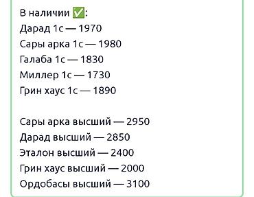 Мука Казахстан ОПТОМ! Эн арзан баалар! Ун Казахстан сатылат! Первый сорт, высший сорт (жогорку жана биринчи сорт): #Сарыарка - 1960 1с; 2840 вс #Дильназ - 1990 1с; 2840 вс #Эталон - 1920 1с; 2360 ...3 750 KGS