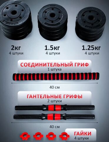 Набор разборных гантелей с регулируемым весом. Гантели состоят из