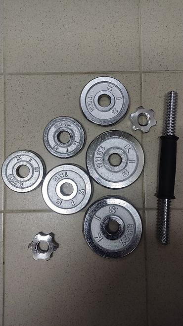Штанга, блины, веса. Комплект: 2 блина по 15кг Общий вес: 30кг Цена