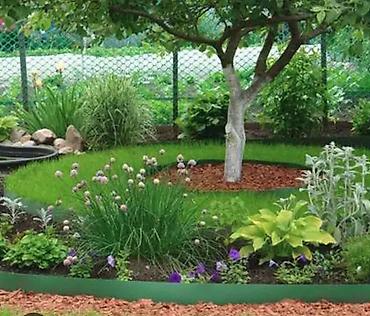 - Гибкая — легко создавать плавные линии и круги вокруг деревьев, кустов и цветников