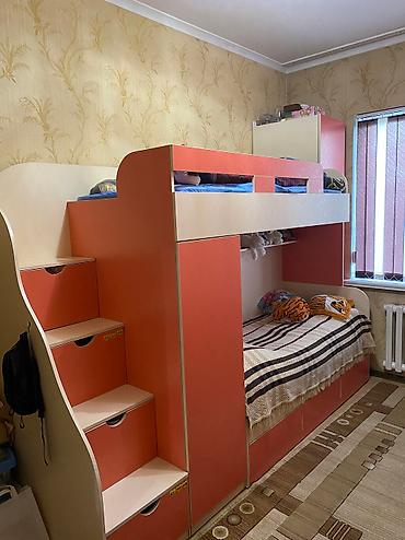 Детский модульный комплект мебели в светлом древесном декоре (ЛДСП): Состав: - Кровать-диван с высокой фигурной спинкой и боковыми бортиками. - Блочная лестница с четырьмя широкими ступенями‑ящика...