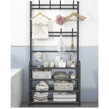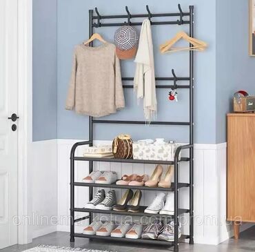 Достоинства: Под одеждой на полках вешалки удобно хранить обувь, аксессуары и другие предметы.