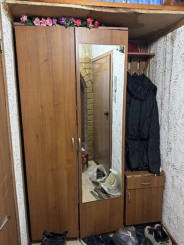 - Двухдверный шкаф для одежды с полноразмерным зеркалом на одной двери.