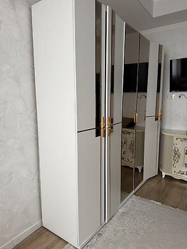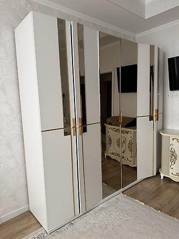 - Шкаф четырехдверный со створками, две центральные двери с большими зеркалами во весь рост.