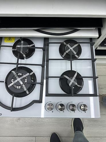 Газовая варочная панель на 4 конфорки, белое закалённое стекло.