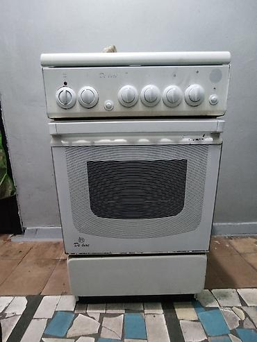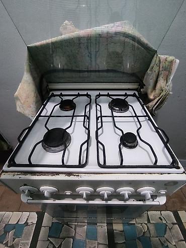 Газовая плита с духовым шкафом, классический формат 50×60 см. Особенности: - 4 газовые конфорки с чугунными решётками - Механические поворотные регуляторы на передней панели - Газовая духовка с см...