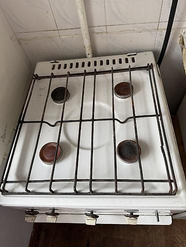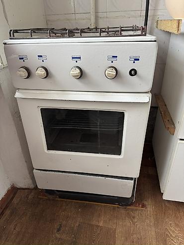 Белая отдельностоящая газовая плита с четырьмя конфорками и встроенной духовкой. Оснащена эмалированной варочной поверхностью и чугунными решетками для посуды. Управление осуществляется при помощи поворотных ручек на передней панели. Подходит для приготовления разнообразных блюд в домашних условиях, обеспечивая функциональность для варки, жарки и выпечки.