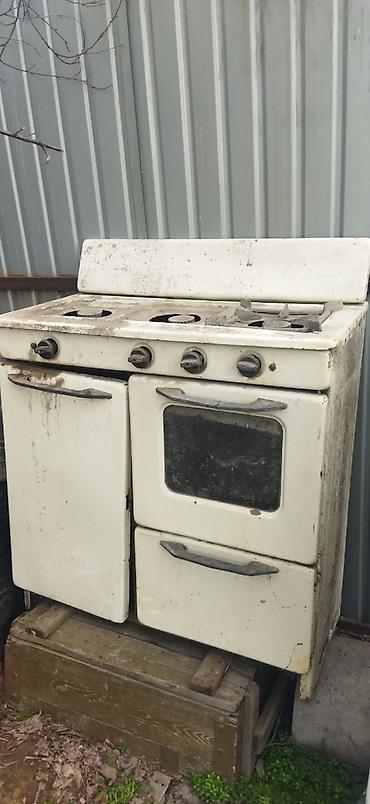 - Две напольные газовые плиты советского типа, эмалированный металл, белый цвет.