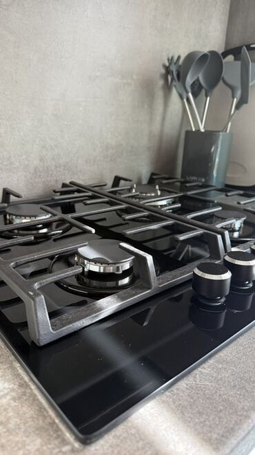 - 4 газовые конфорки: две стандартные, одна ускоренного нагрева (WOK/трёхрядная) и одна экономичная.