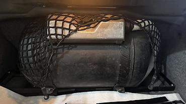 - Баллон цилиндрический, установленный в багажнике на металлической раме с крепёжными лентами.