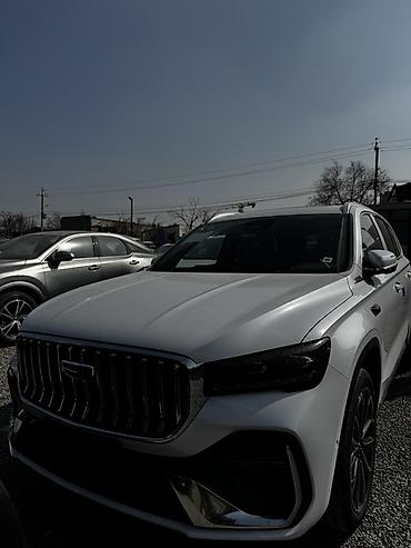 Geely Monjaro (эмблема Geely), белый кроссовер SUV.