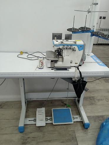 Промышленное швейное оборудование: прямострочная машина GEMSY и 3/4-ниточный оверлок JACK на отдельных станциях.