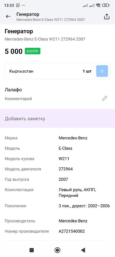 - Совместимость по данным с фото: Mercedes-Benz E-Class W211, двигатель серии 272 (272964), ориентировочно 2002–2007 гг. выпуска.