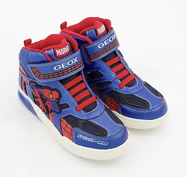 - Тематика: Человек‑паук — яркие принты, 3D‑аппликация персонажа, фирменные логотипы Geox и Marvel, надпись Spider‑Man на мыске