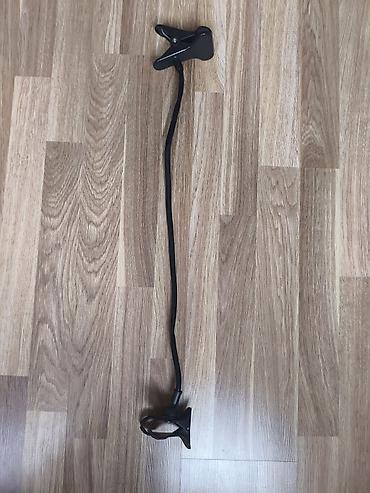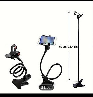 - Универсальный держатель для смартфона с двумя прищепками: одна для крепления к столешнице/полке, вторая — для фиксации телефона.