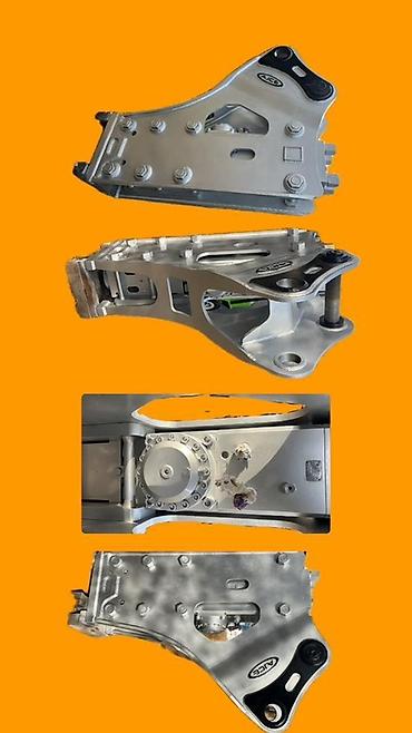 Комплектация по фото: корпус молота, верхняя серьга с проушинами, гидроблок с портами, нижняя направляющая под рабочий инструмент.