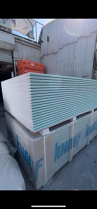 - Тип: листовой гипсокартон (ГКЛ/ГКЛВ – на фото присутствуют зелёные влагостойкие листы)