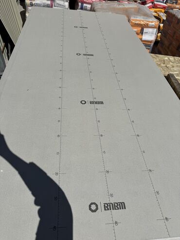 Паллеты гипсокартона RBM, упакованные в прозрачную пленку, готовы к транспортировке или хранению. Каждый лист гипсокартона имеет маркировку RBM, что указывает на его производителя. Продукт подходит...