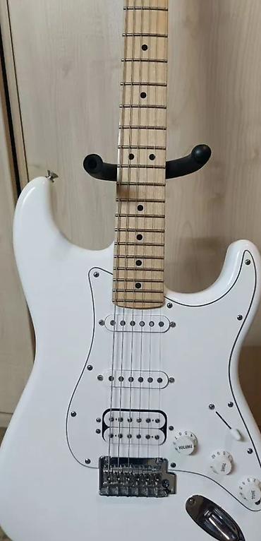 Мощная, эксклюзивная электрогитара формы Stratocaster! Topr уместен. Белый корпус, переливающийся белый пикгард. Гитара полностью отстроена в мастерской и готова к игре. Гриф прямой, без дефектов...
